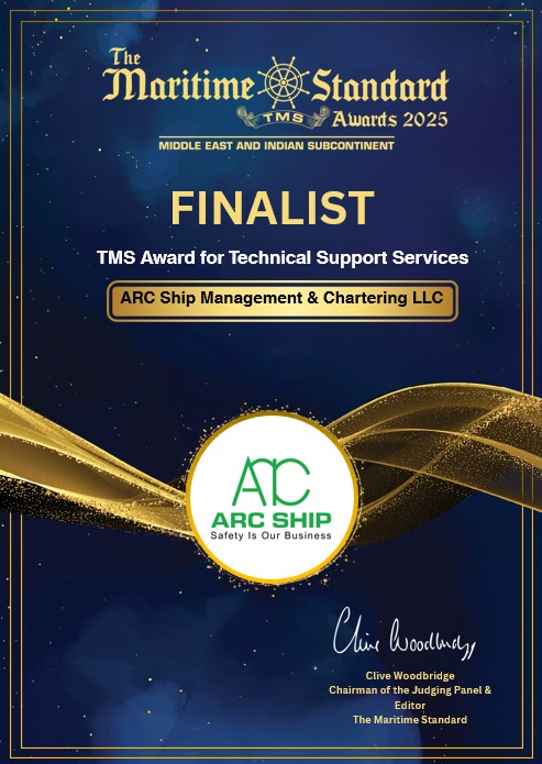Dubai, UAE – September 2025 ARC SHIP Management & Chartering LLC is proud to announce that it has been selected as a Finalist at The Maritime Standard Awards 2025, one of the most prestigious recognition platforms in the global shipping and maritime industry.